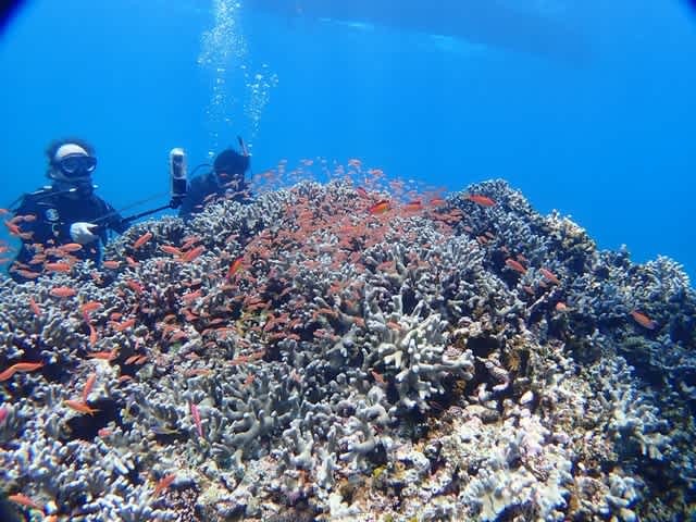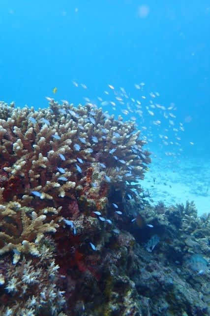 地形ダイビングにスズメダイの群れに癒されてきました♪