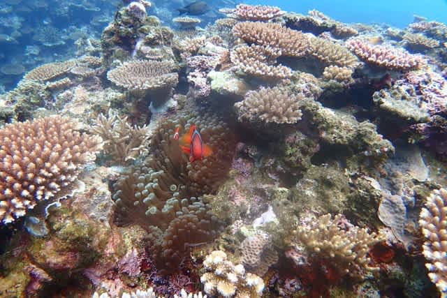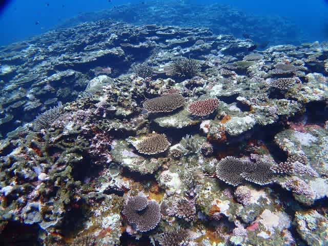 みなさんこんな感じで水面とサンゴをみてますよ♪