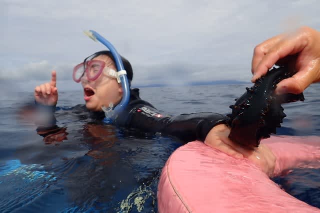 ナマコを手にのせられ、、