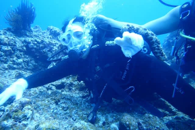 ちんさん初体験ダイビングでしたけど、水中も落ち着いた様子ですいすい潜ってました♪