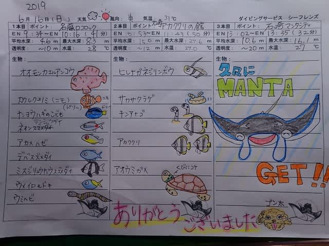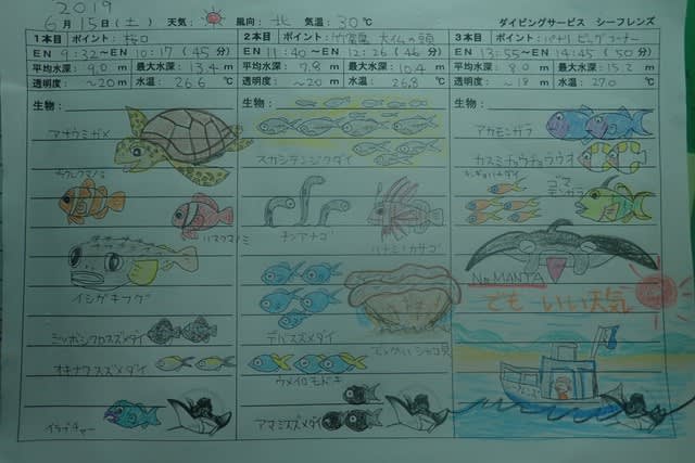 リクエストの「マンタ」や「ウミガメ」のポイントには行けそうにありません。。。