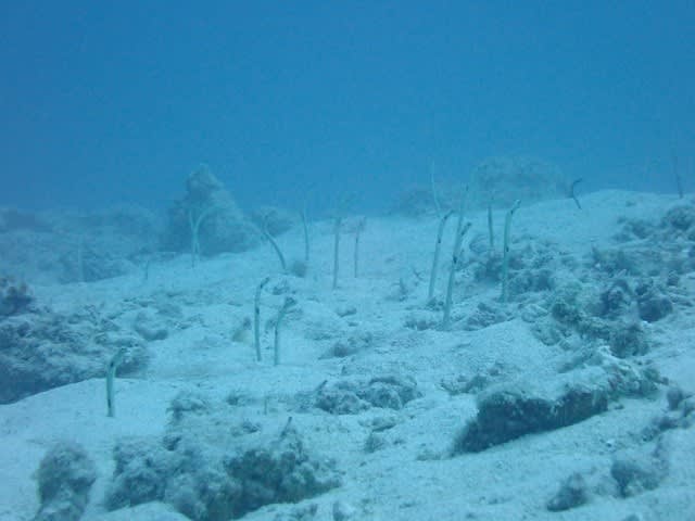 砂地には、チンアナゴがニョキニョキしてて、