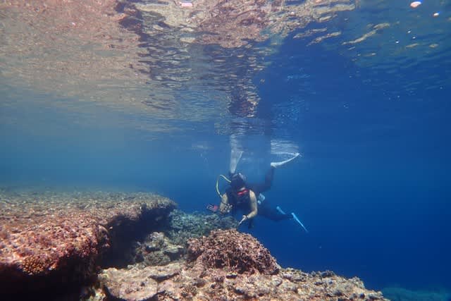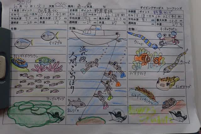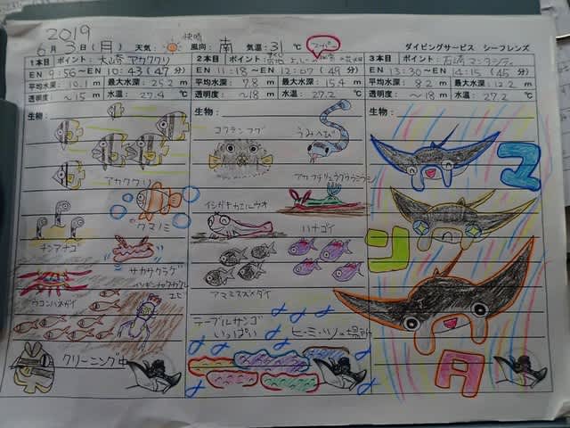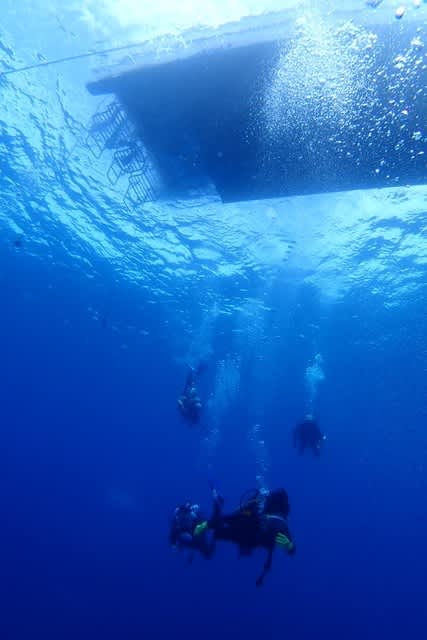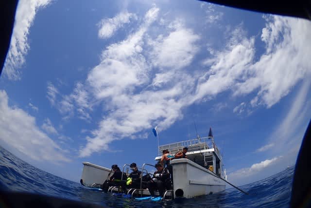 水中も水面は朝の雨でアマゾン川みたない色をしてましたが、水深1㍍下は青い海が広がってましたよ\(^o^)/