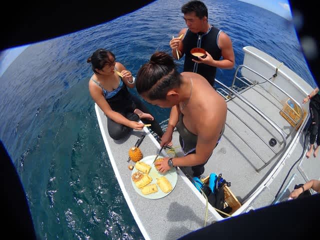 ダイビング中にはこんな場面もありましたが、ボートに戻ると雨も上がってましたよ♪