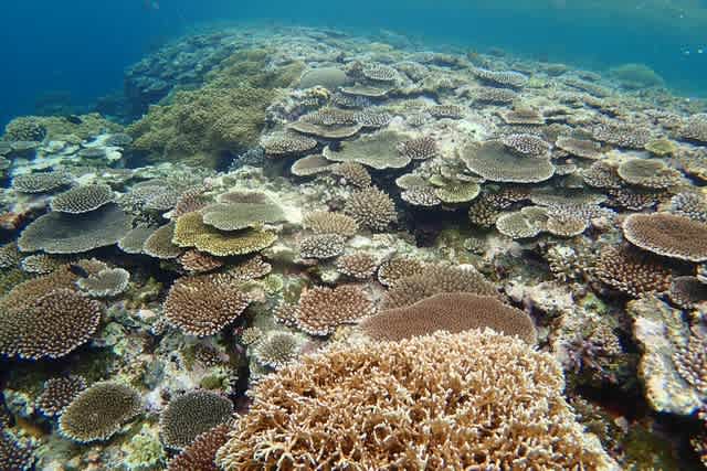 大潮の干潮で水面下のサンゴが陸に顔を出してました(^^)/