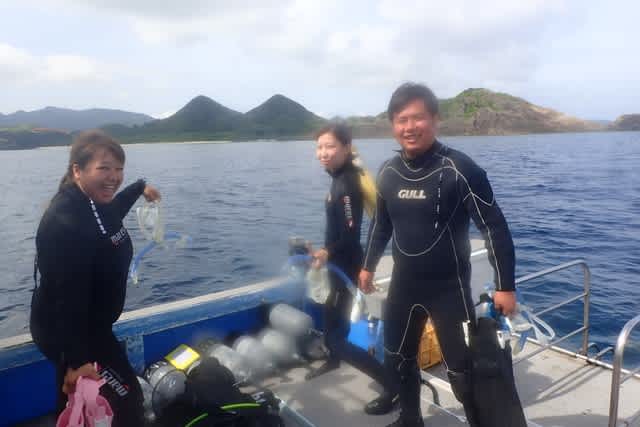 今日はファンダイビング&体験ダイビングのペアーのチームのゲストの皆さんでしたので