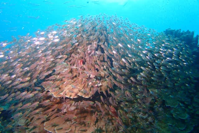 スカシテンジクダイやキンメモドキが群れ群れで、
