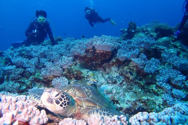 マンタの前にカメさんに挨拶をして