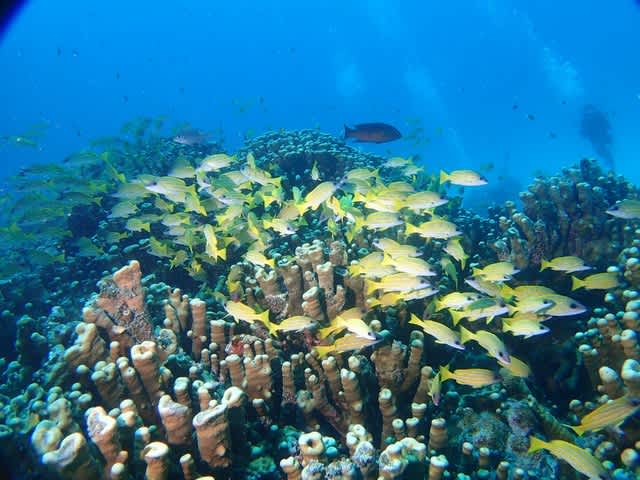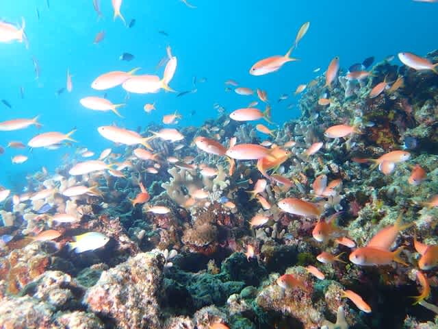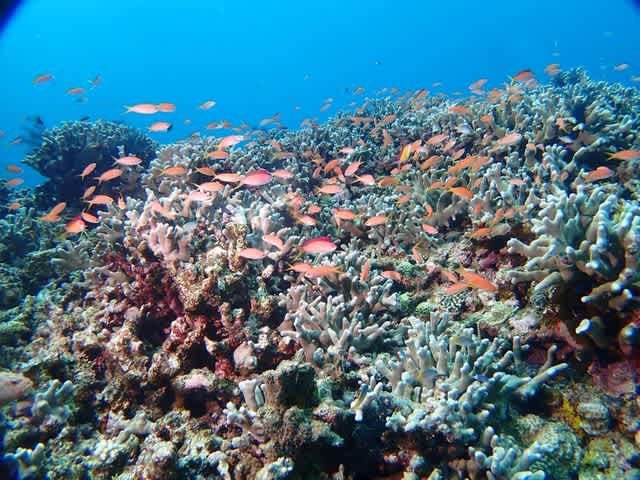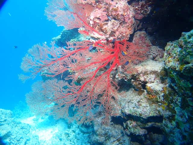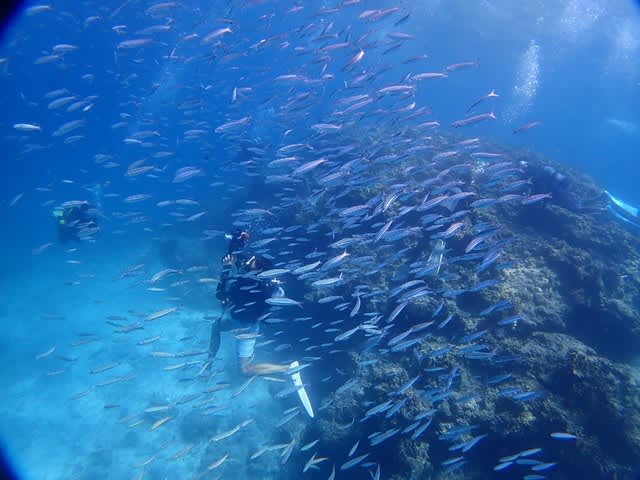グルクンの群れにイソバナも青い海に冴えますね!(^^)!