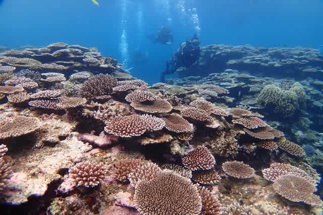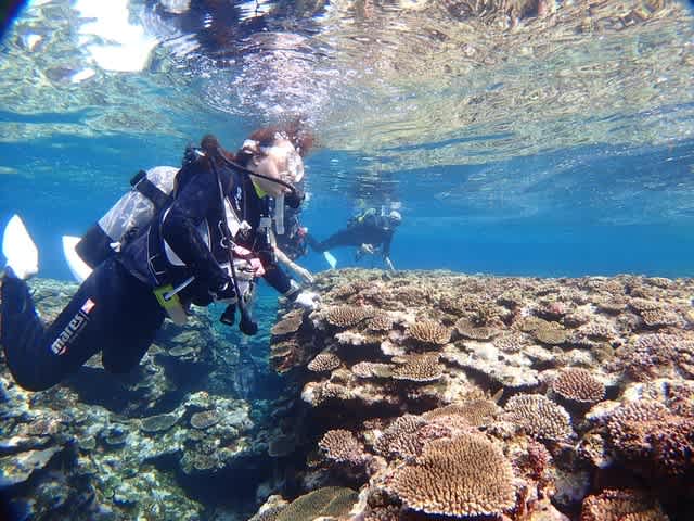 大きな台風の後は枝サンゴが折れたりの被害がでるのですけど、今回の台風では水中での