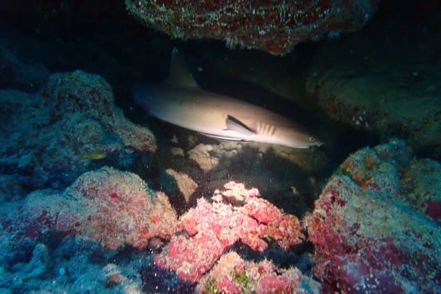 ここのポイントはサメが多いのですけど、今日はホワイトチップがよくダイバーの前に現れてウロウロして