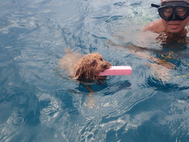 皆がダイビングしている間、オーナーと特訓をしていたゴンちゃん!!(興味はなさそう(笑))