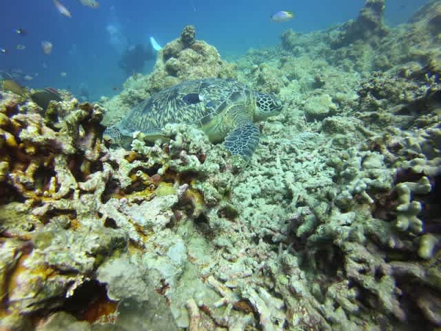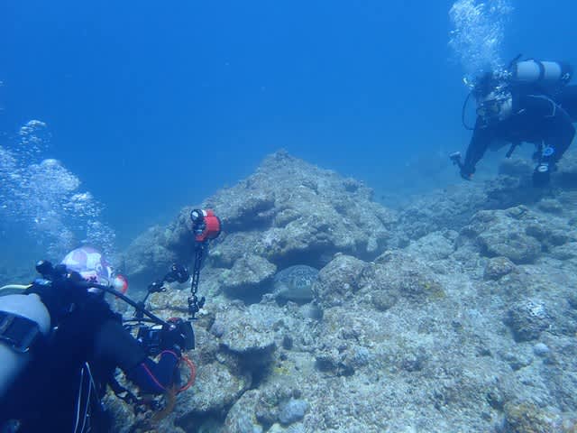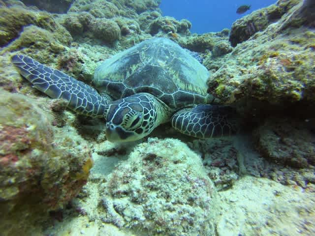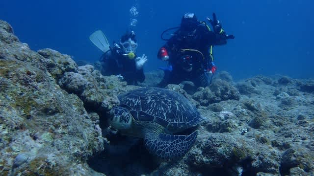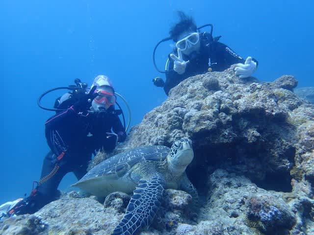 本日も大きなアオウミガメがお休みタイム中でした(#^.^#)