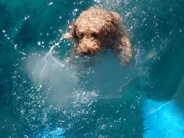 犬はダイビング出来ないから、水面でバシャバシャ