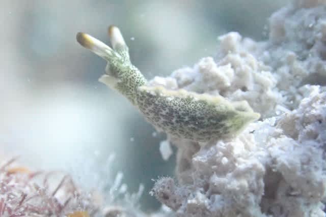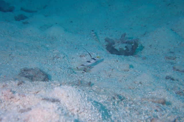 チンアナゴ見てたら、奥の方にヒレナガネジリボウが登場です( ^)o(^ )