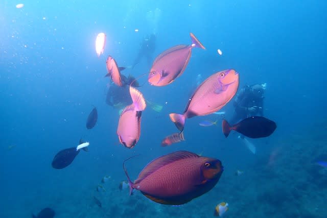 グルクンの群れにイソマグロが登場しますけど、透明度が悪かった(-_-;)
