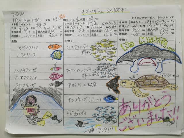 そんな感じで、本日は記念ダイブのゲストの方がおめでとうございます♪