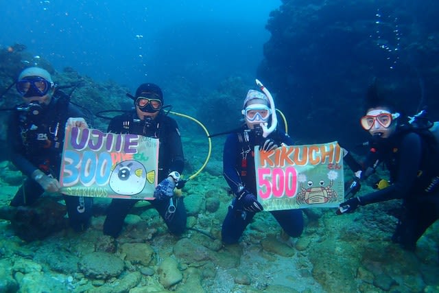 3本目には、今月何回潜ったかわかりませんが、ウジウエさん祝300本キクチさん祝500本記念