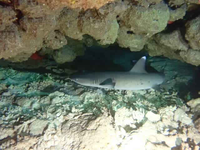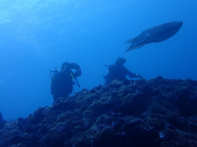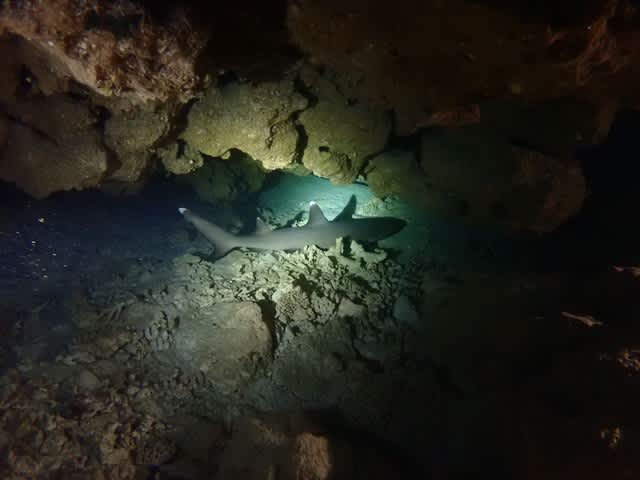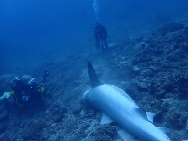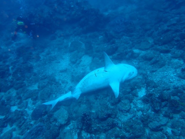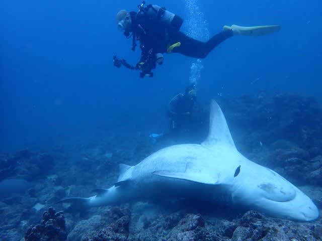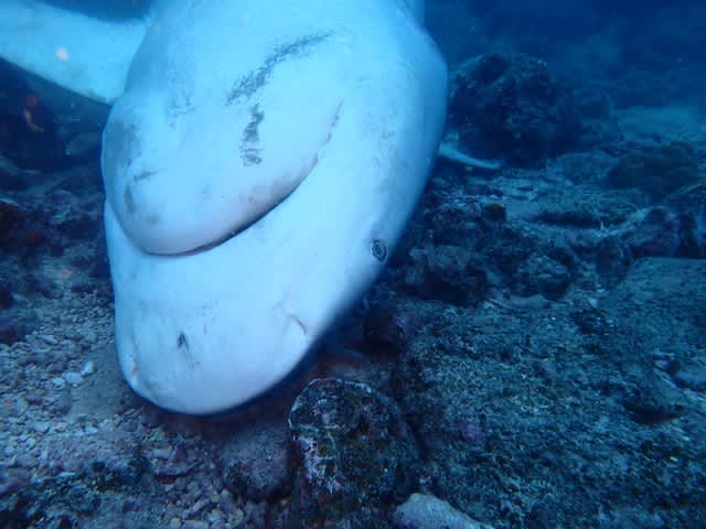 さて、マンタが見れなかった今日の最大の話題は、「サメの話」