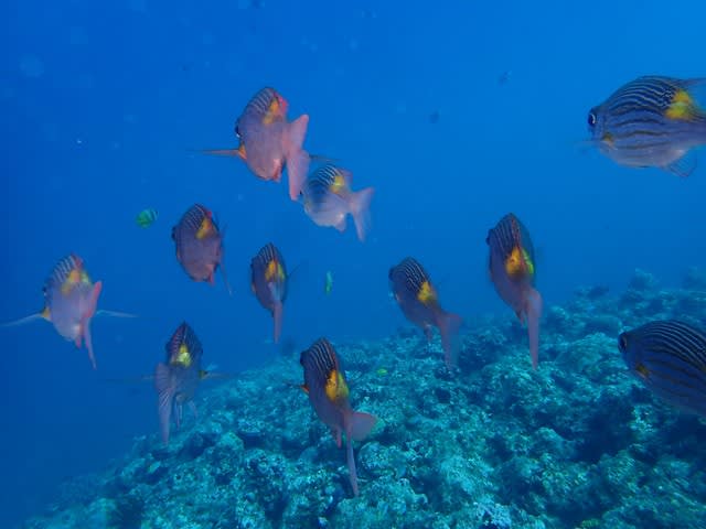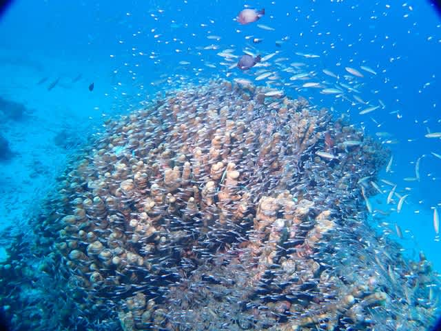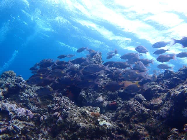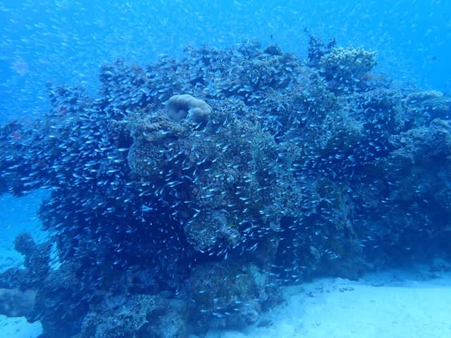 潮が引いていたので、グルクンとサバヒーの大量の群れが見れました(´▽`)
