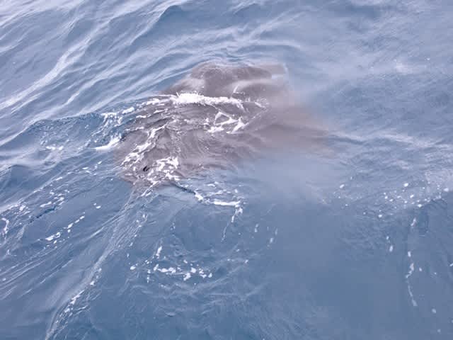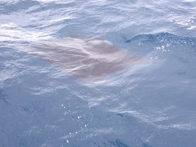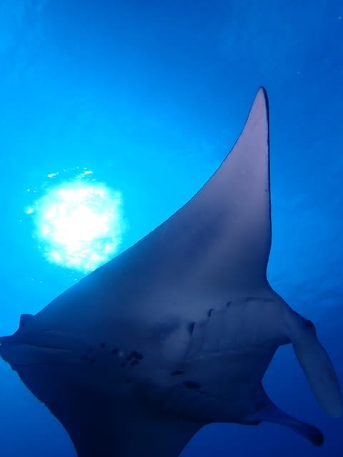 極めつけは、帰りの途中の船の上から、水面マンタ。