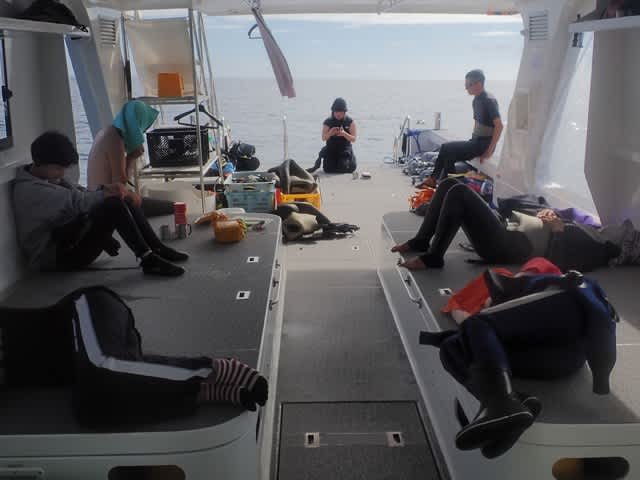 なんせウェットスーツを脱いでしまった後なので、飛び込んでマンタと戯れる勇者はいませんでした。