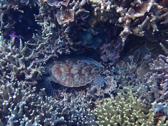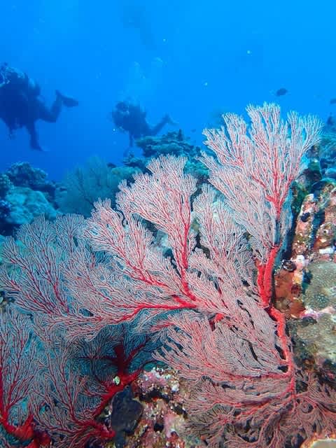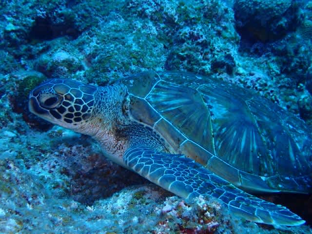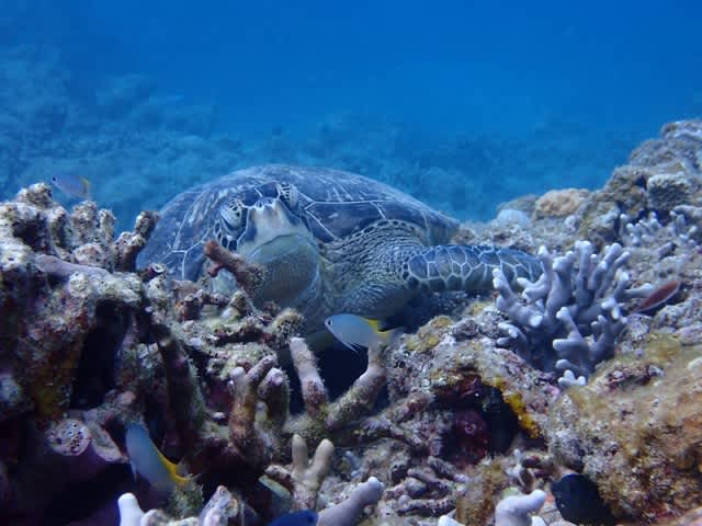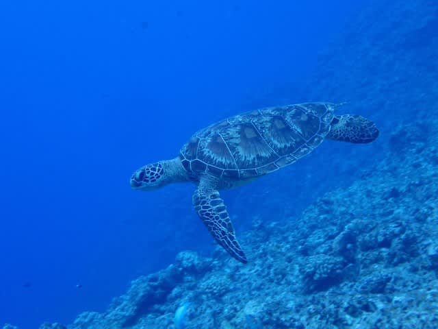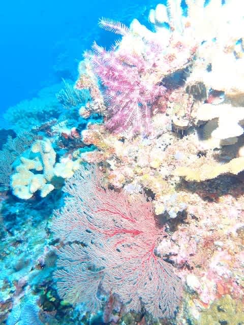 マンタは出るし、カメは常にいるし、カラフルな魚とサンゴ、そしてディープな場所もおもしろい。