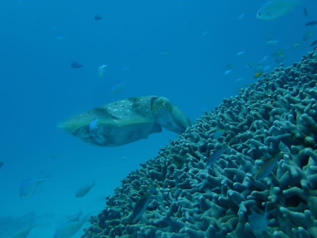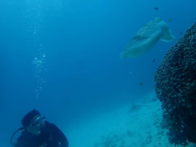波照間でドリフトダイビングでジンベサメ狙ってきましたが・・・・遠くの方に居たような