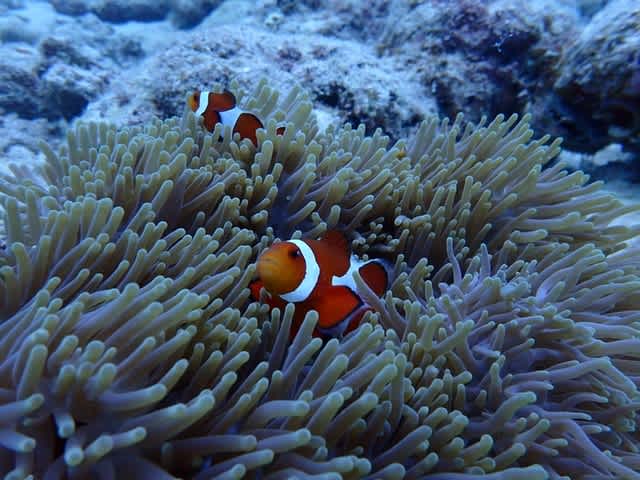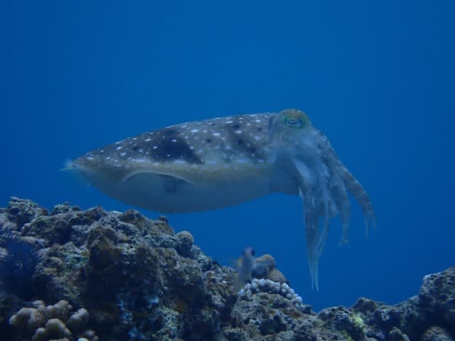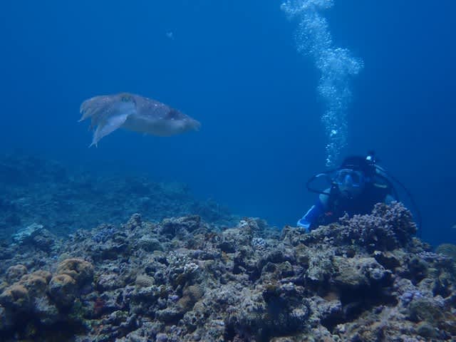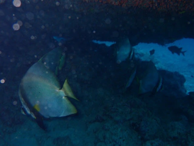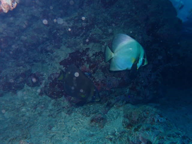 (写真左)↓ホンソメワケベラに体をお掃除してもらってます(*´ω`*)