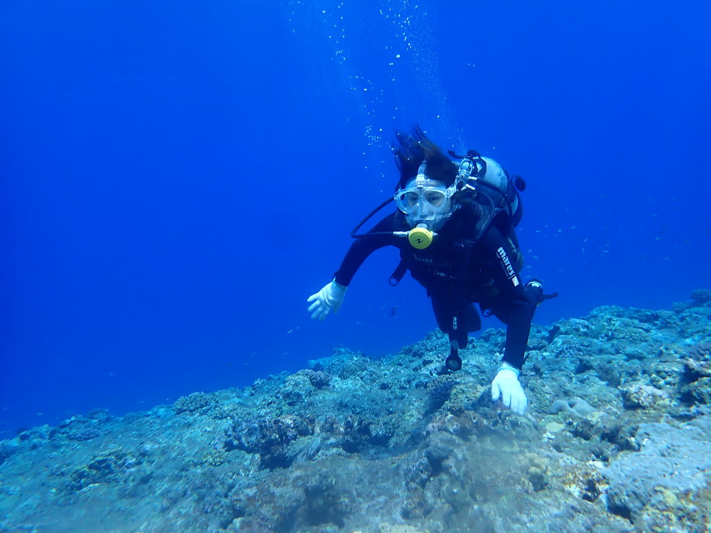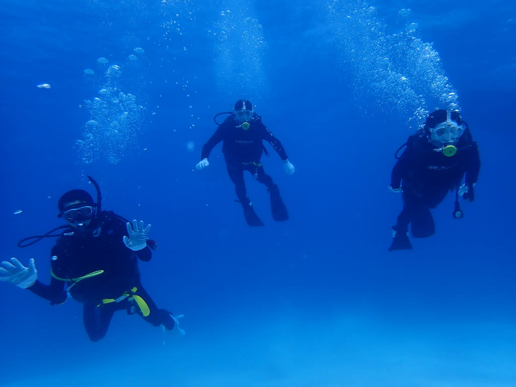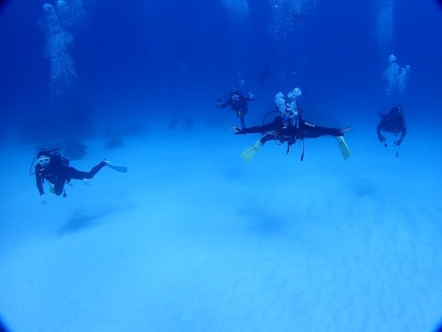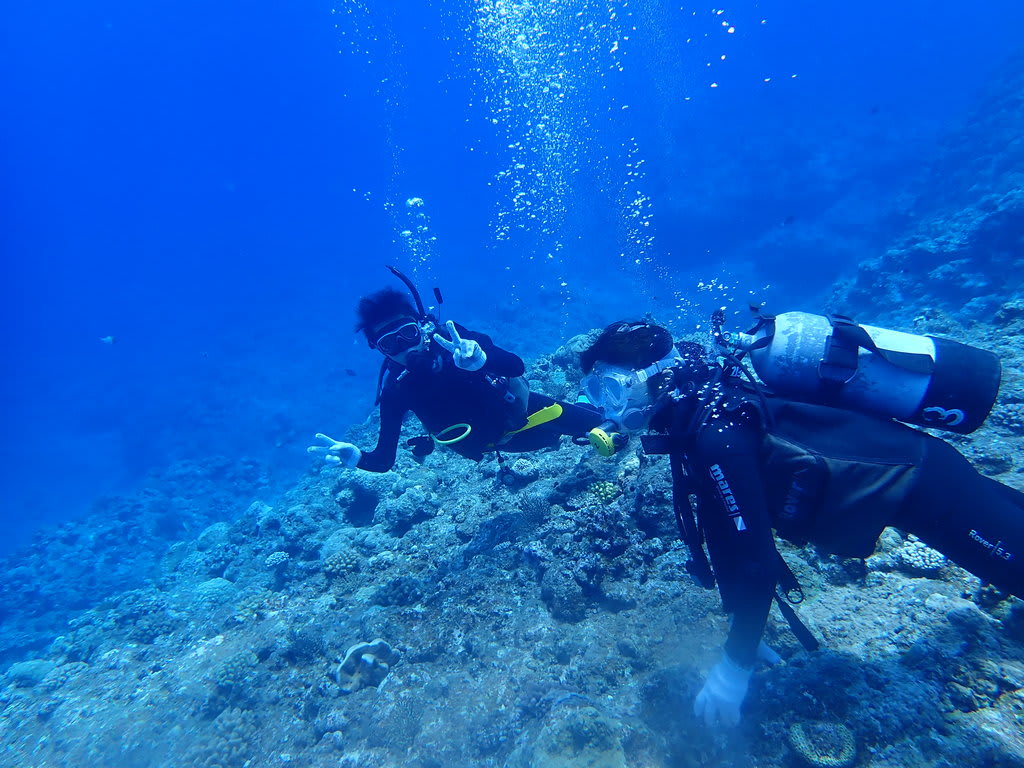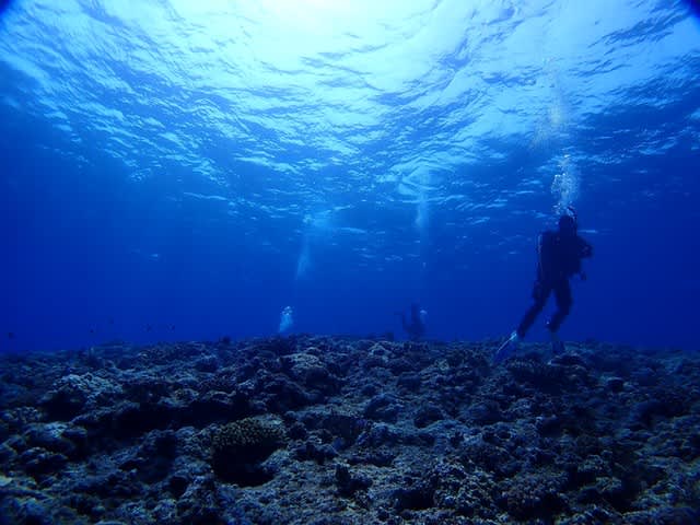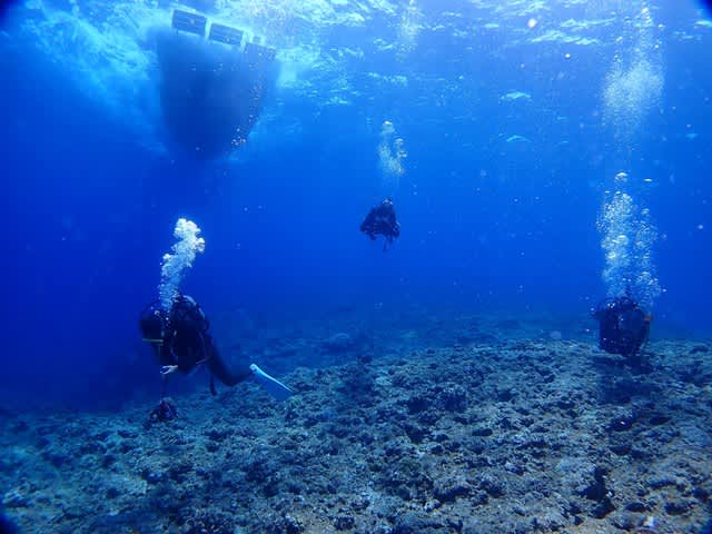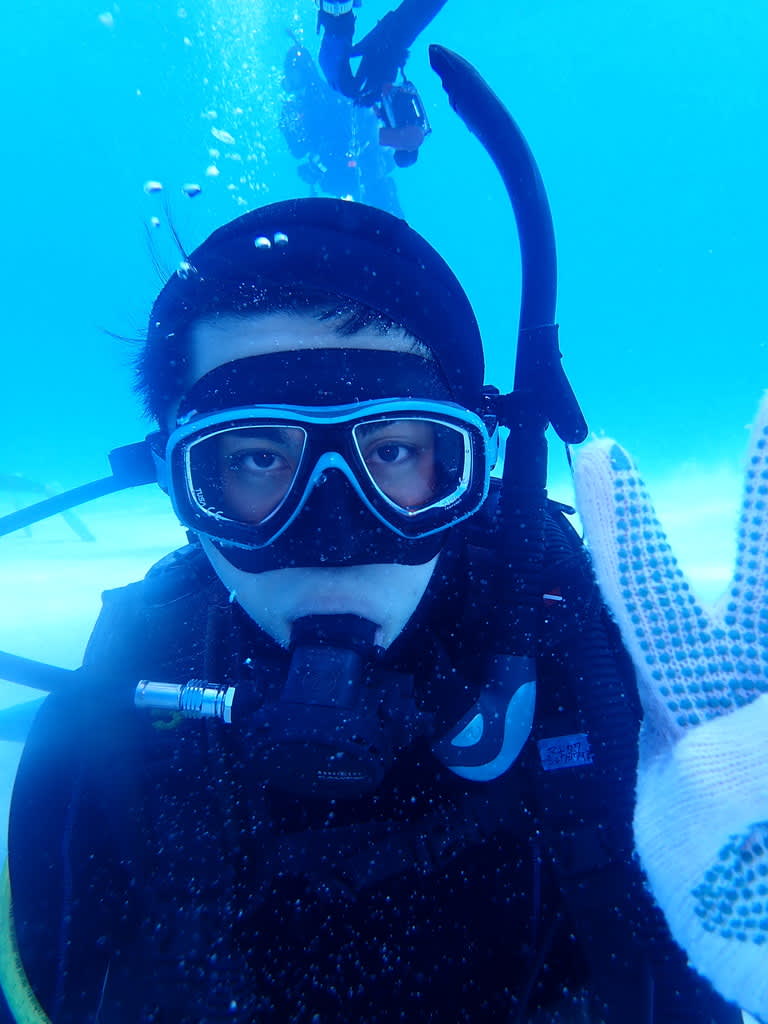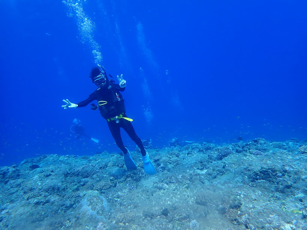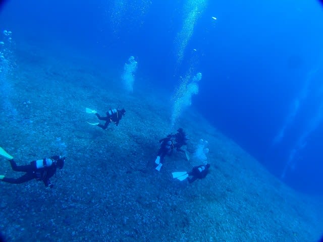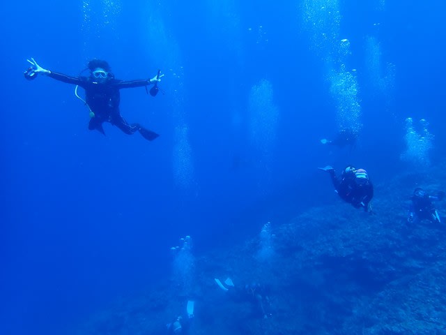 とりあえず、僕が先頭で、みなさんはお互いに距離をとって、自由にダイビングで。