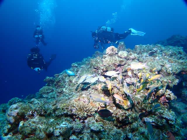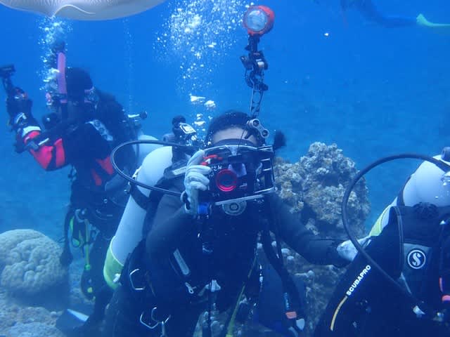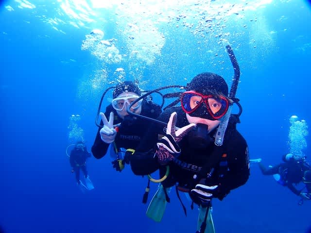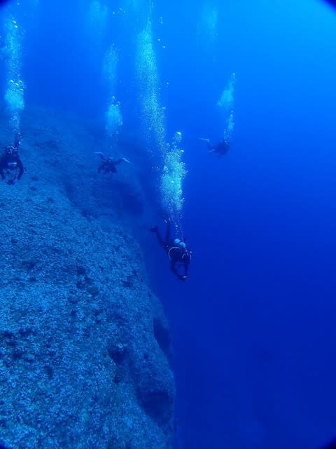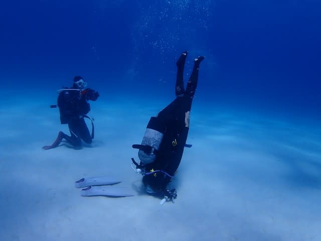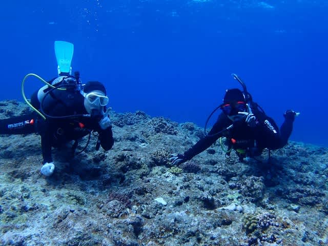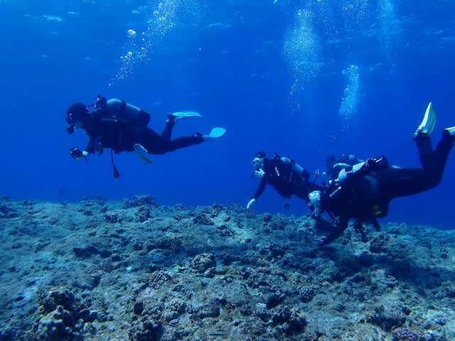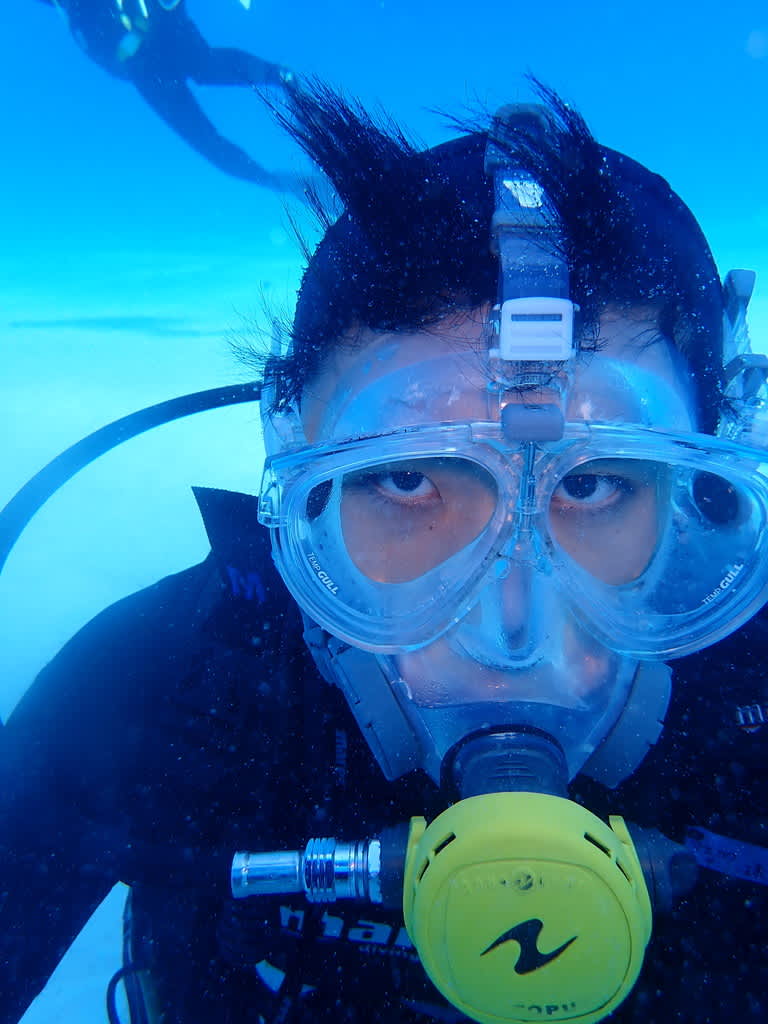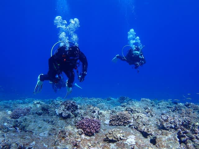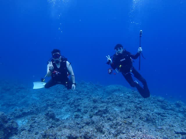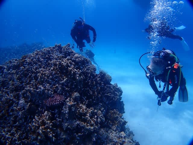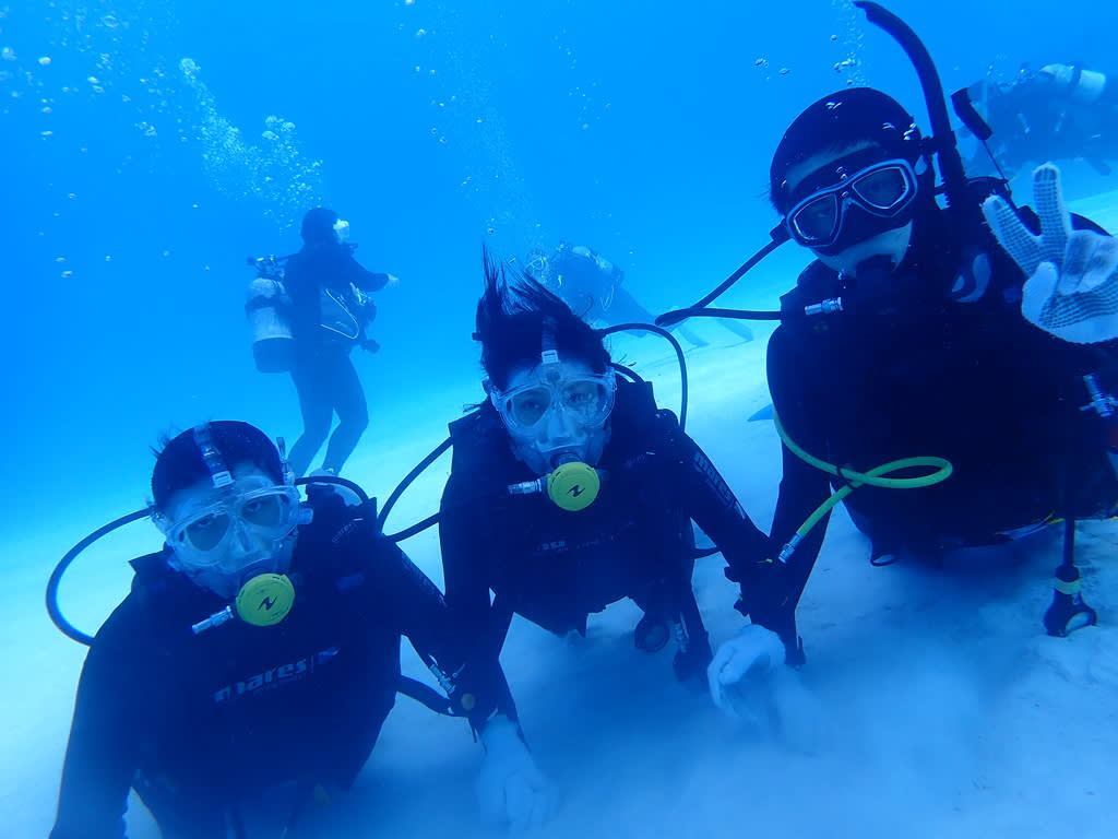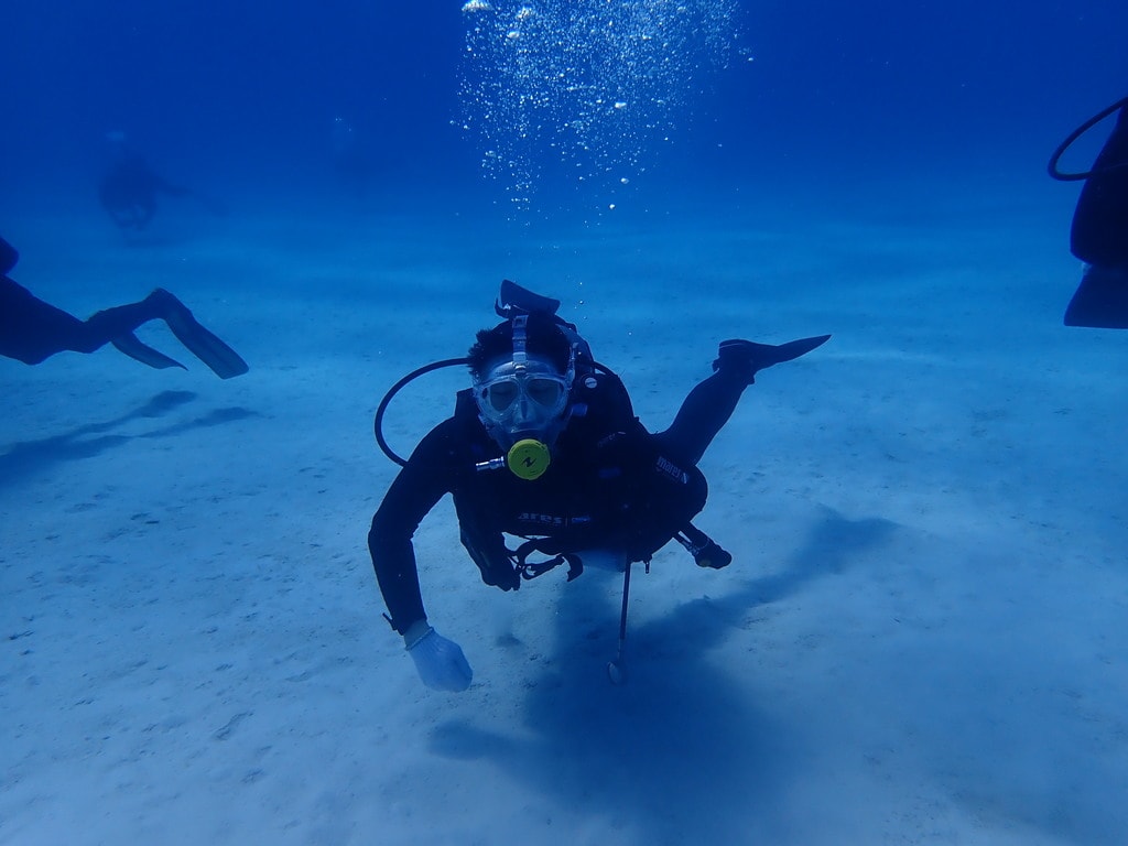 とりあえず、僕が先頭で、みなさんはお互いに距離をとって、自由にダイビングで。