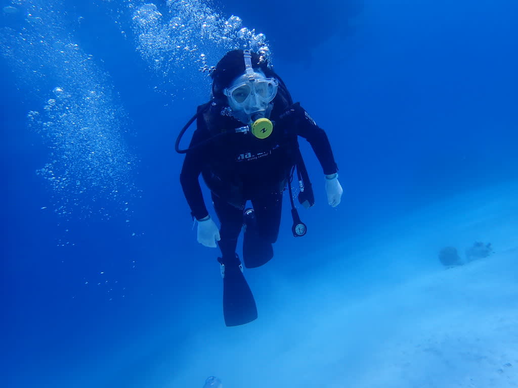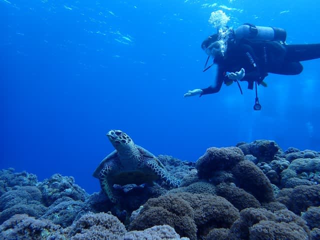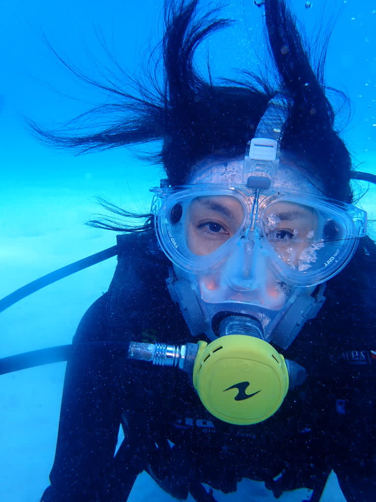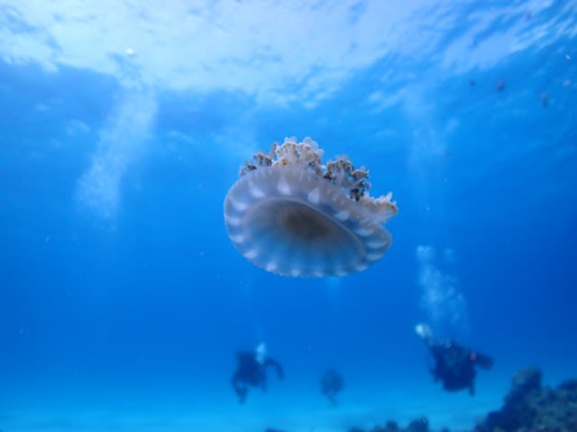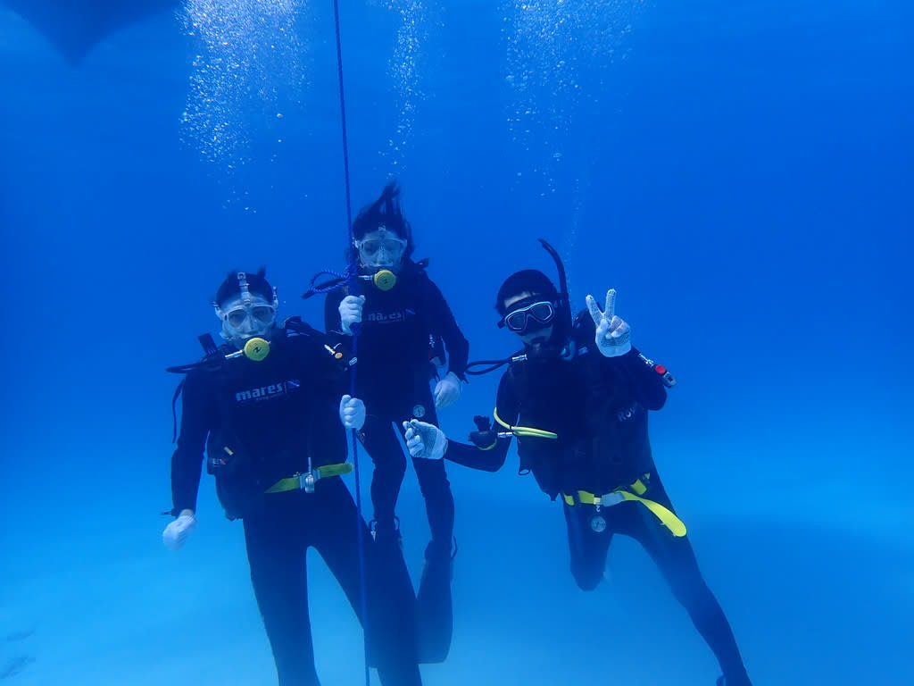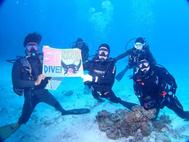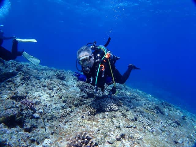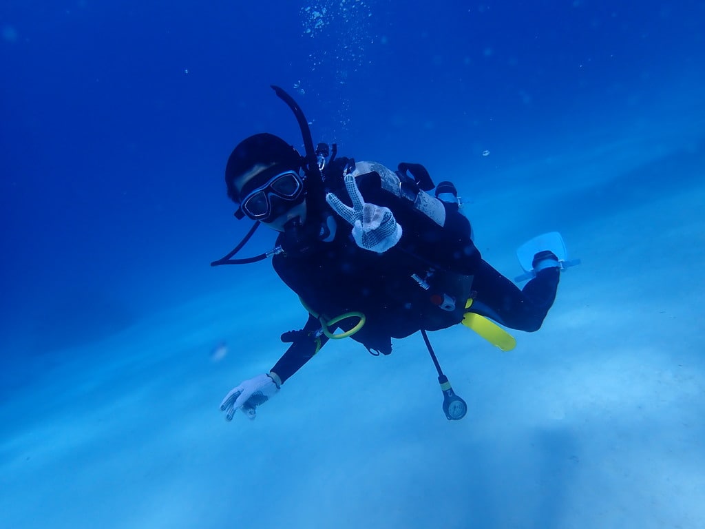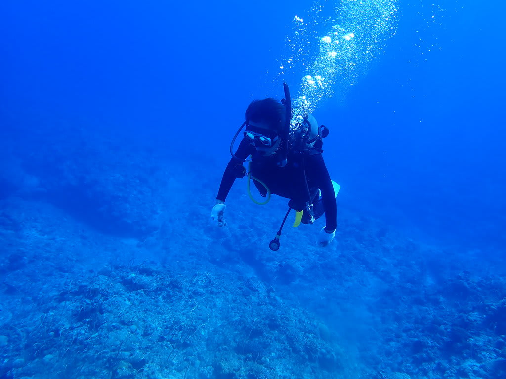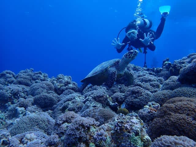 とりあえず、僕が先頭で、みなさんはお互いに距離をとって、自由にダイビングで。