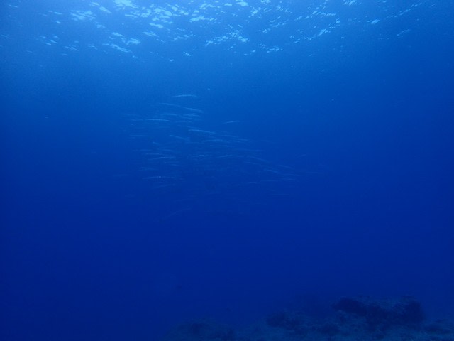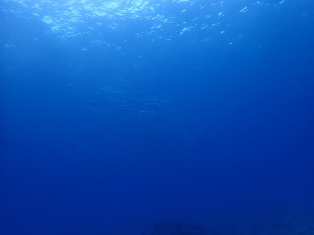 透明度、やや悪めですが、ぶっといバラクーダが!!