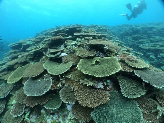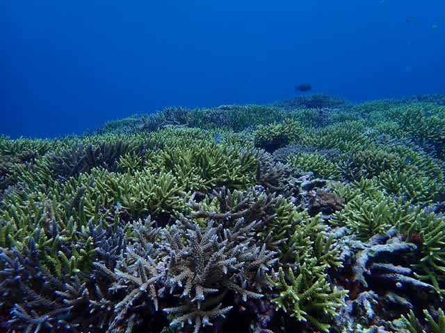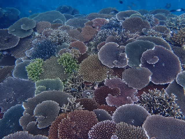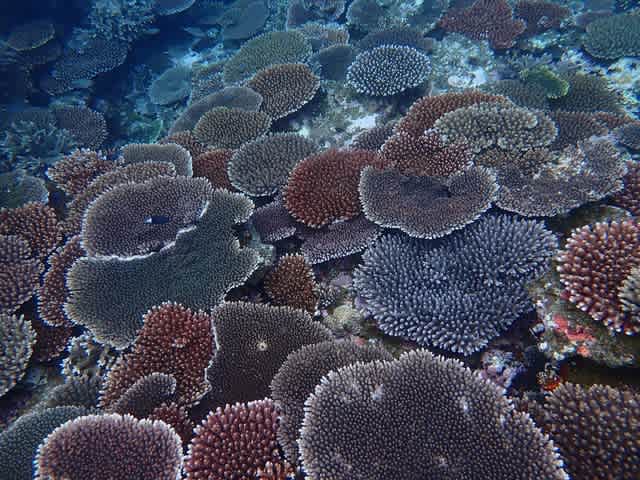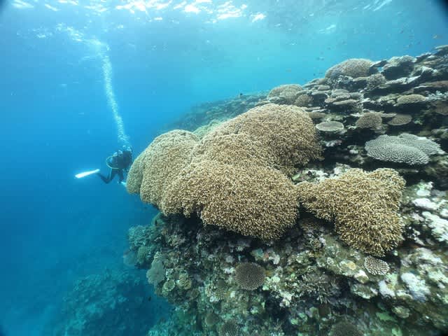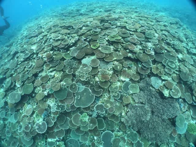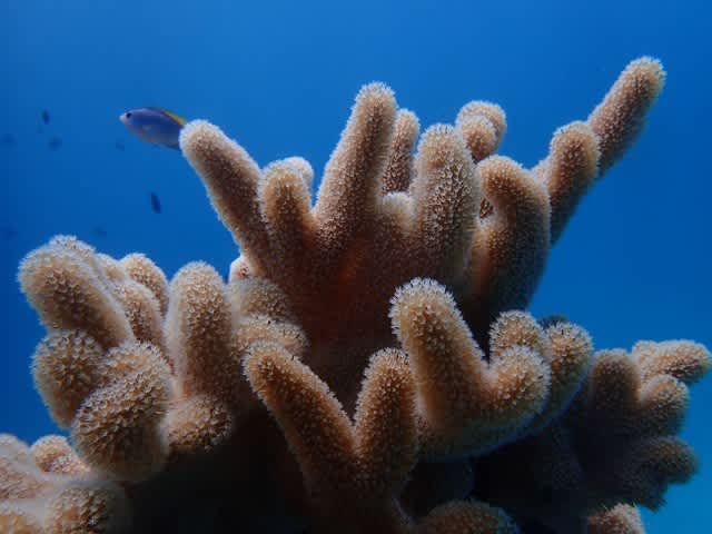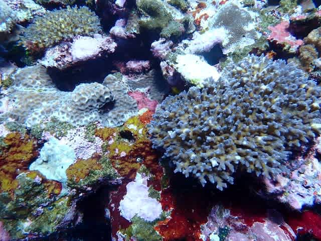 その珊瑚の水面下には空気の気泡が、これがまたとっても綺麗ですよ!!