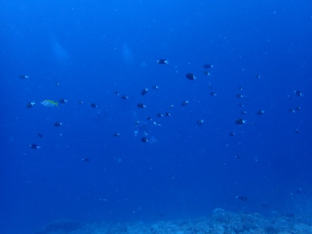 グルクンの群れ、イソマグロ4,5匹、ネムリブカ、などなど