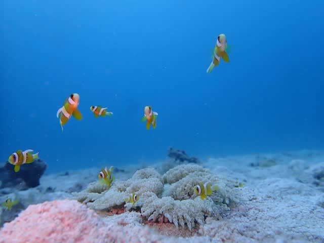 (いつもなら、青空、透き通った海、色とりどりの魚たち、そして群れを紹介するところですが。。。)