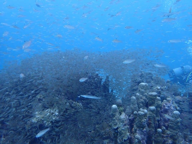 まだまだ南風が残っているので、竹富北→三ツ石→小浜島のリーフ沿いでダイビング。