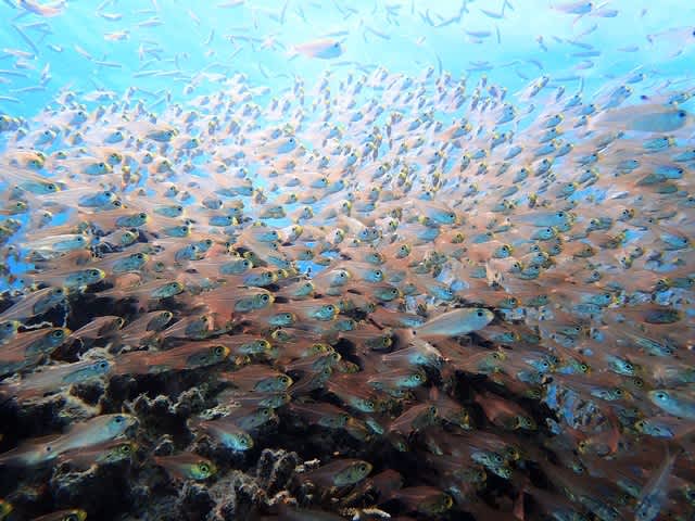スカシテンンジクダイ、キンメモドキがいっぱい群れていましたね!!