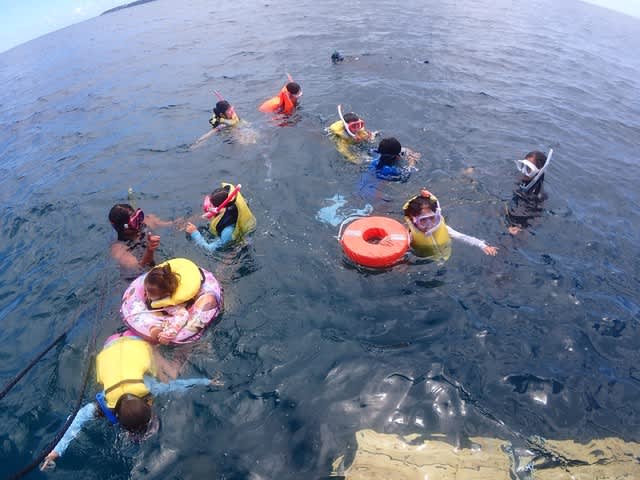 本日子供も多くて7名乗船、水面でばしゃばしゃしたり、釣りして大量にロクセンスズメダイを