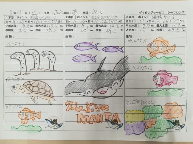 ウミガメやニモ、そしてマンタ(水深10m)を!!