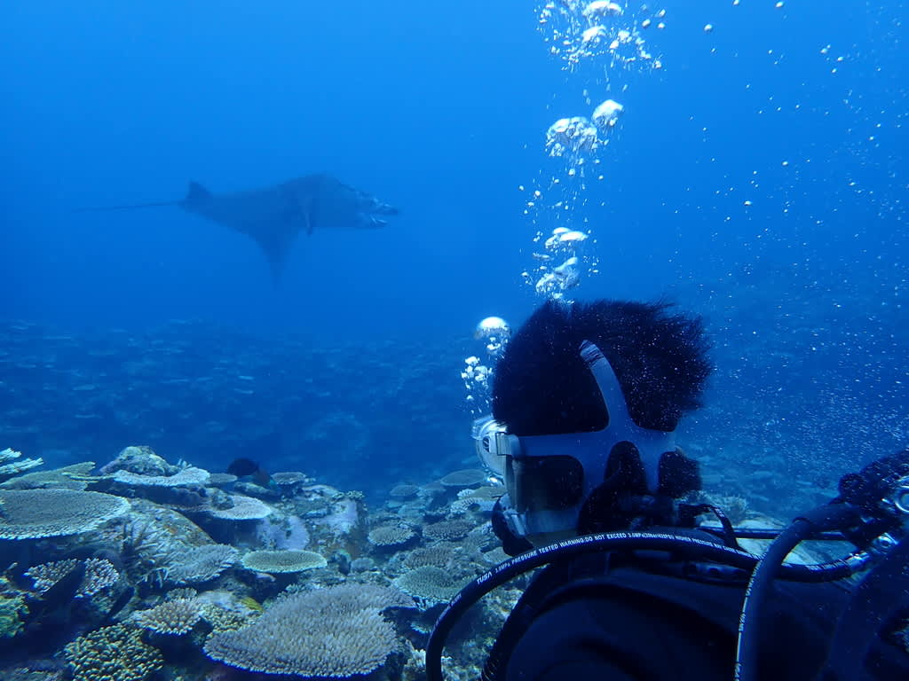 マンタ(水深30m)やバラクーダを見てきました。