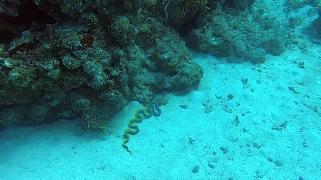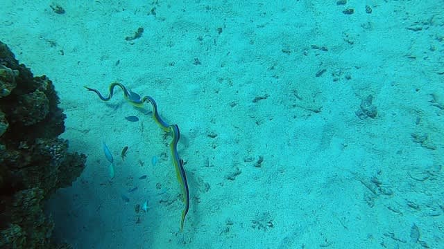 英名:Ribbon moray の名にふさわしい、ヒラヒラした美しい優雅な泳ぎです。