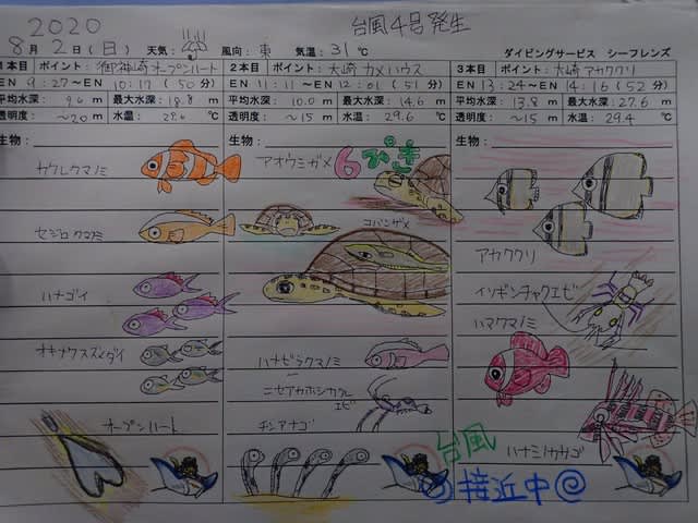 こんばんわ、今日は台風の為ダイビングは中止です。