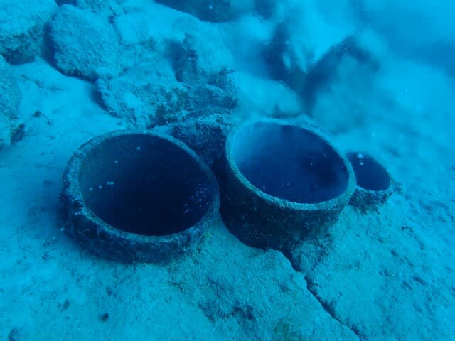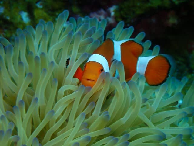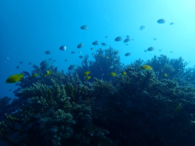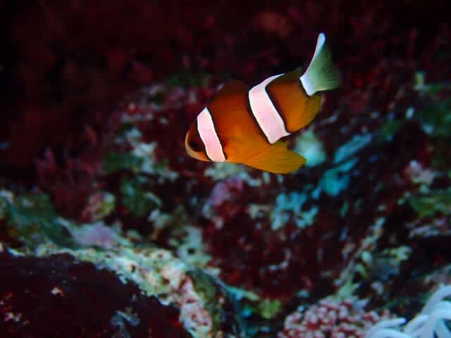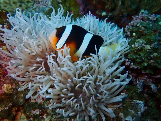 マンタ待ちながら、下にいるカワイイクマノミさんたちに