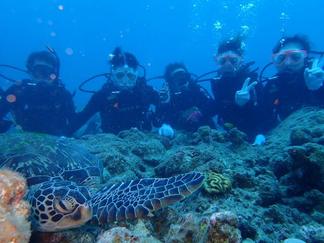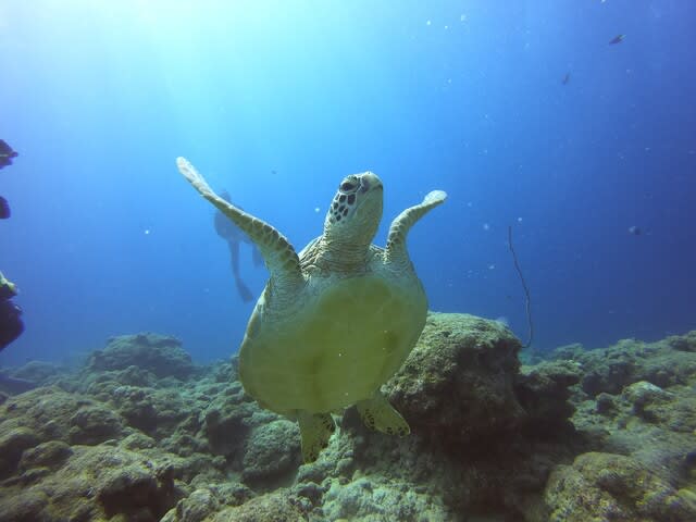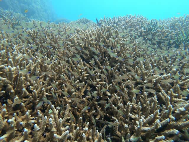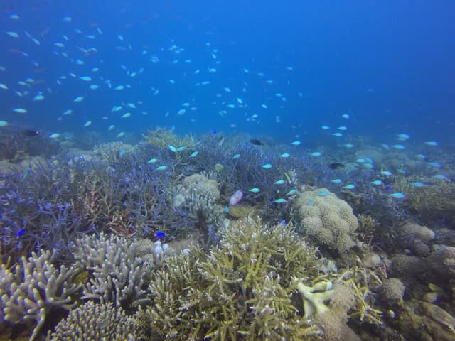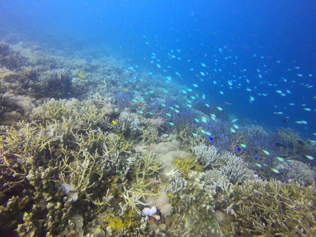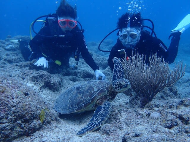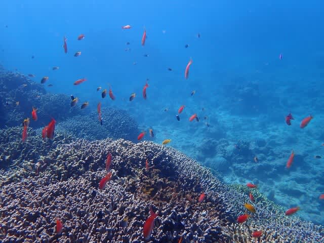 最後は、名蔵湾のサンゴの上で、のんびりです。