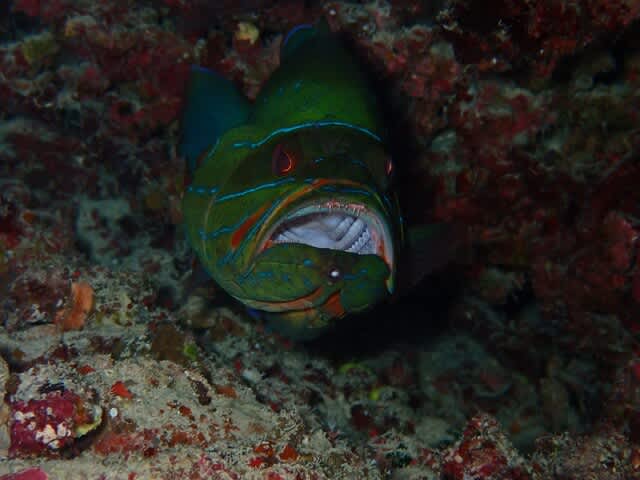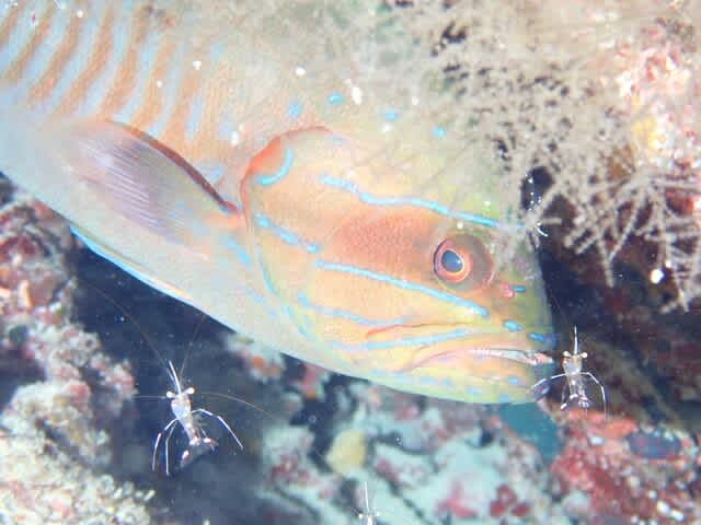 タテスジハタのクリーニングシーン!生態写真ですね。