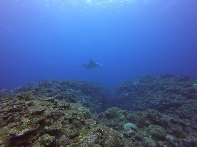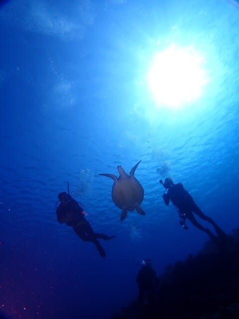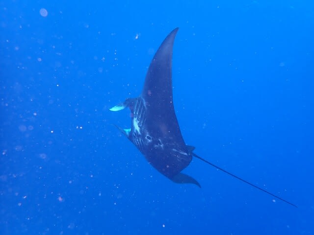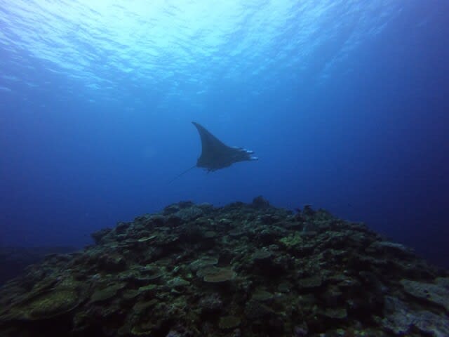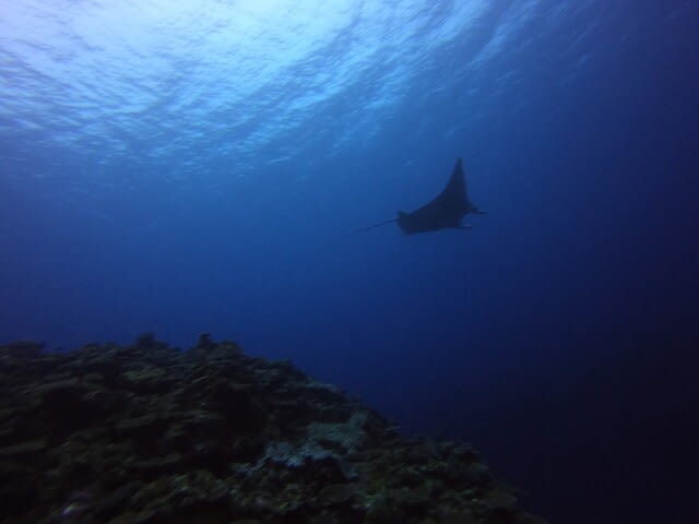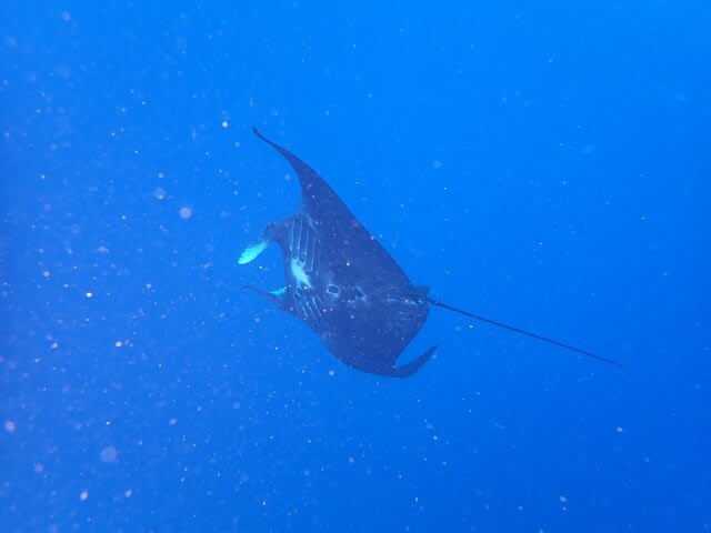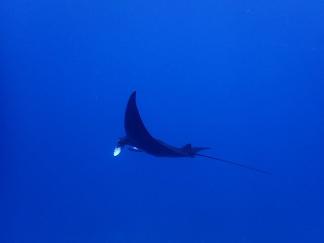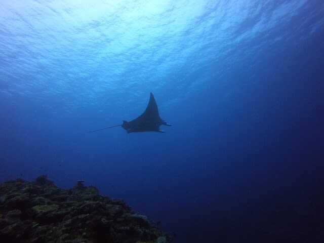 カメと一緒に泳いでたら、まさかのブラックマンタ登場です!(^^)!