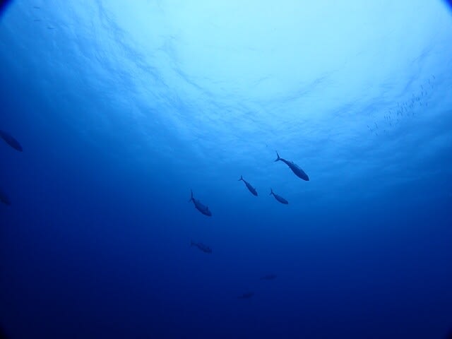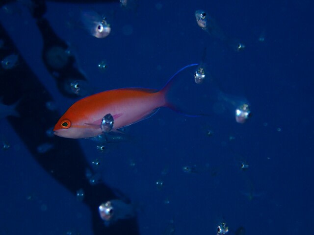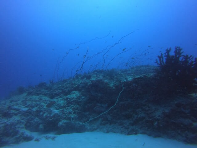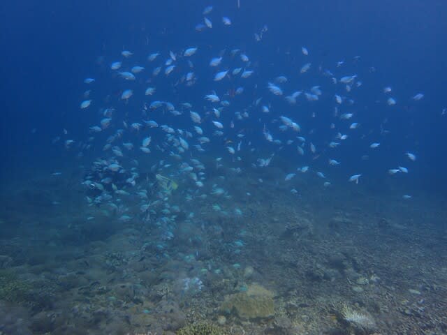 一本目から黒島でドロップ沿いを泳ぎながら、マンタ探しですけど出ませんね。