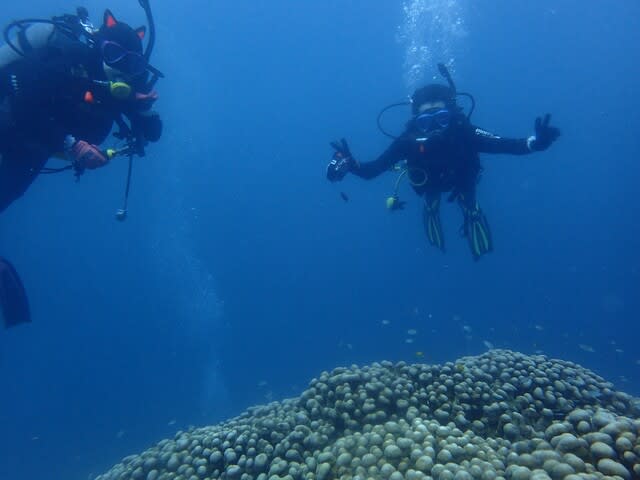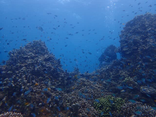 サンゴの上で、スズメダイたちと遊んできました。