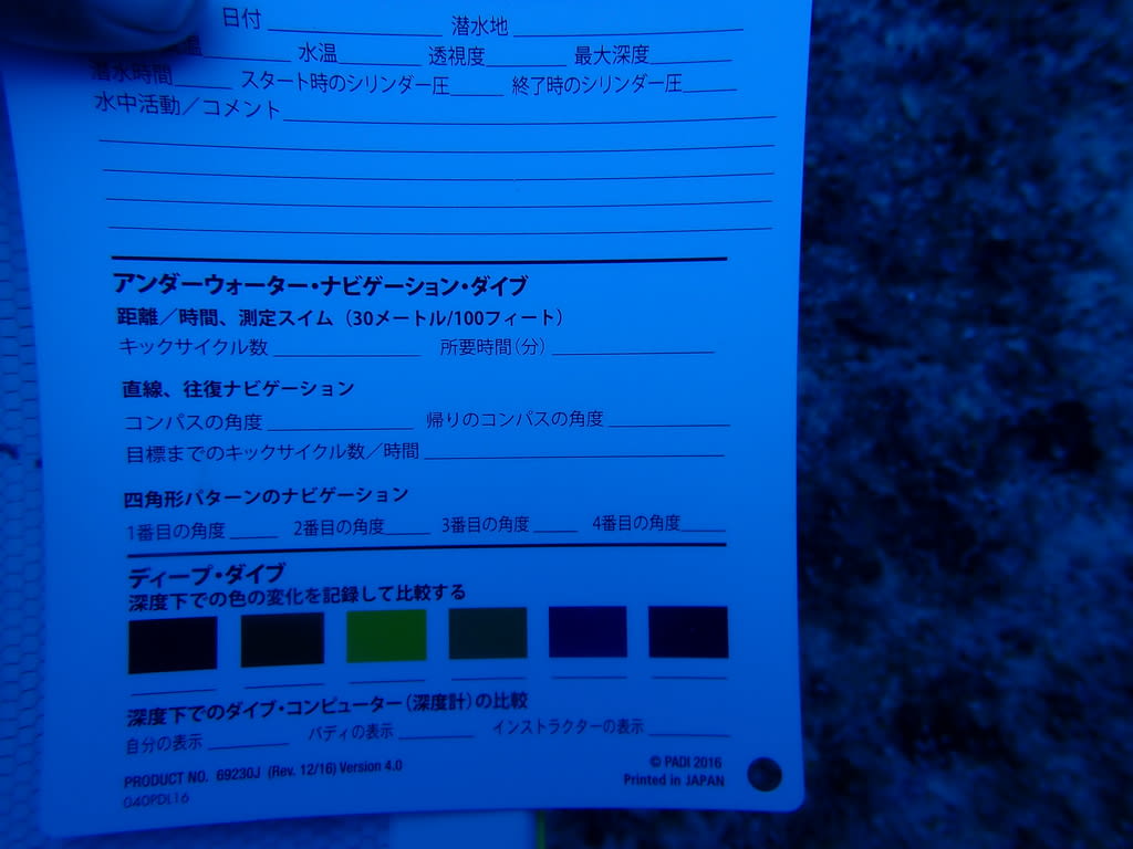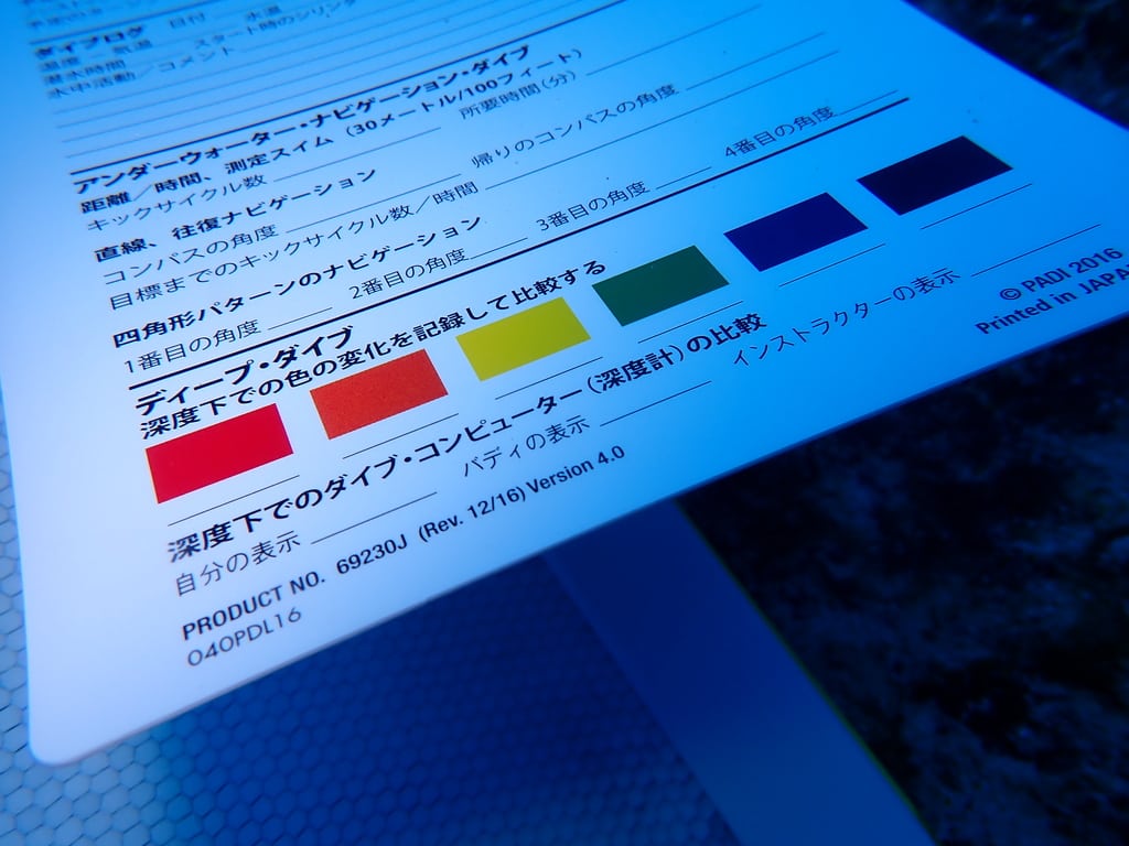 深度下では色はこうなりますね~オープンウォーターの時に習いますよ~?